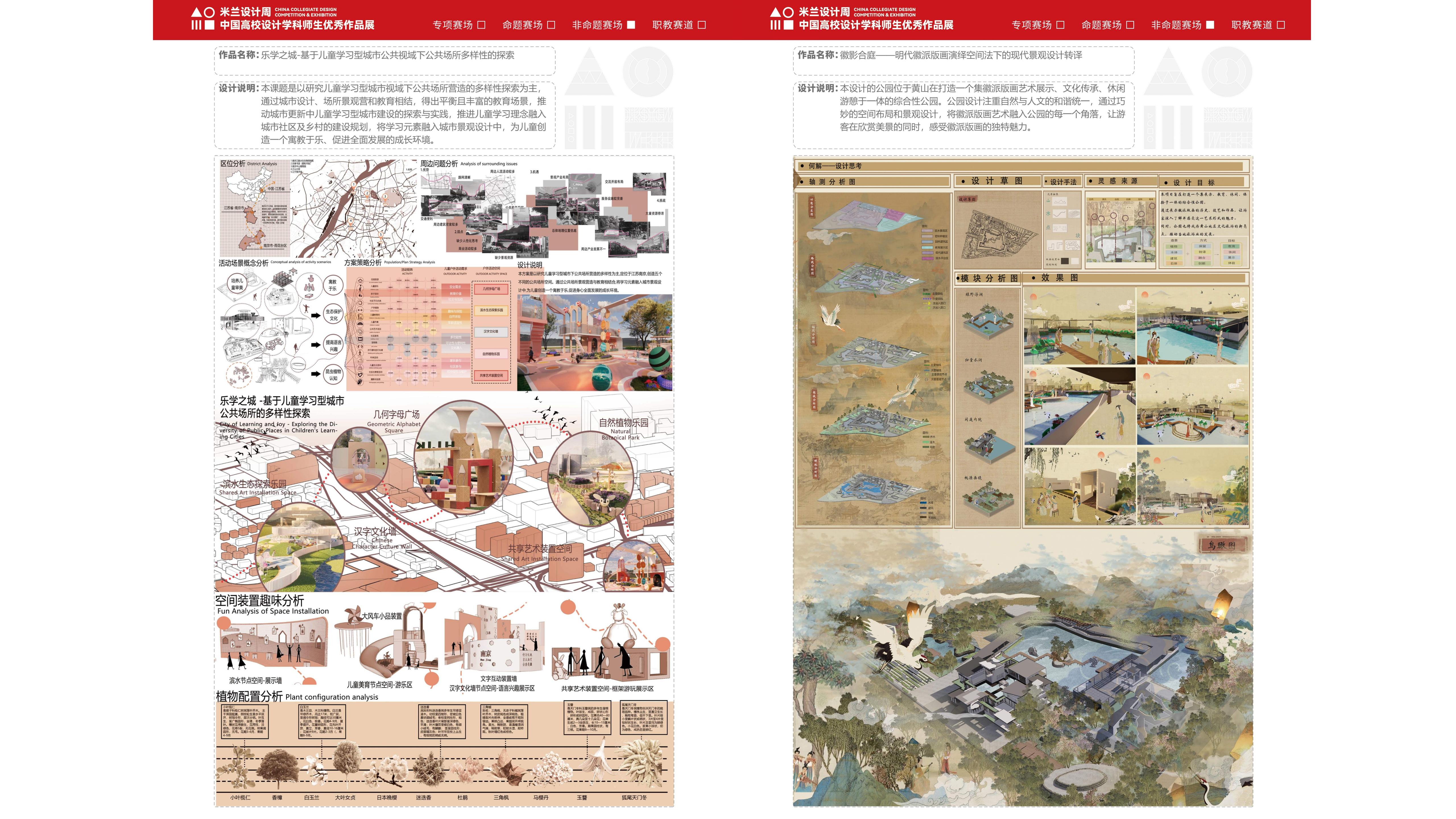 本届赛事中,艺术设计学院师生紧扣时代脉搏,以设计回应社会需求,作品涵盖城市规划、儿童友好空间、低碳环保等多个领域,体现了设计学科的社会价值与创新活力。