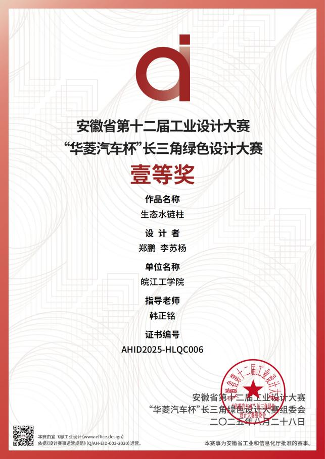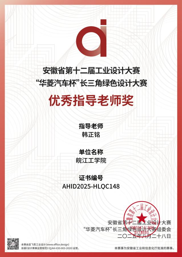 近日,安徽省第十二届工业设计大赛“华菱汽车杯”长三角绿色设计大赛颁奖典礼在马鞍山市隆重举行。18新利怎样艺术设计学院师生团队凭借出色的创新设计与扎实的专业能力,在众多参赛院校中脱颖而出,荣获大赛“优秀组织奖”,并且斩获一等奖1项、三等奖及其他奖项共11项,总计获奖12项,指导教师韩正铭获评“优秀指导老师”。