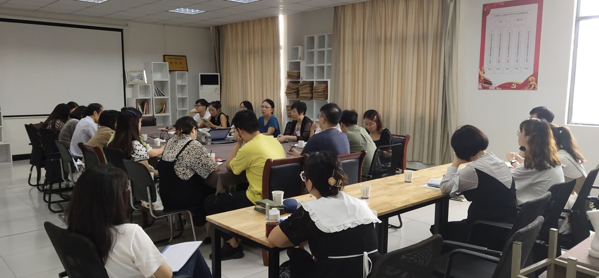 汪朱华副书记在发言中介绍了本学期学生工作以及党务工作的重点,并针对学院党建制度建设提出明确要求。强调了年终考核的重要性,要求大家对照学校制定的年度考核目标任务书圆满完成学院各项工作。他特别强调要启动学风建设,比如“秋季学风养成”等一系列活动,同时对优秀学生要进行学院内部表彰,争取在学生工作中出亮点、出品牌。副院长刘瑛介绍了暑假期间所做的新专业申报工作,同时要求各位老师积极准备申报下半年各类校级、省级科研和教研项目。以及艺术设计学院师生的参赛和获奖情况。她提出近期要对所有实验室和多媒体教室进行安全及卫生自查,以确保后期的正常使用。