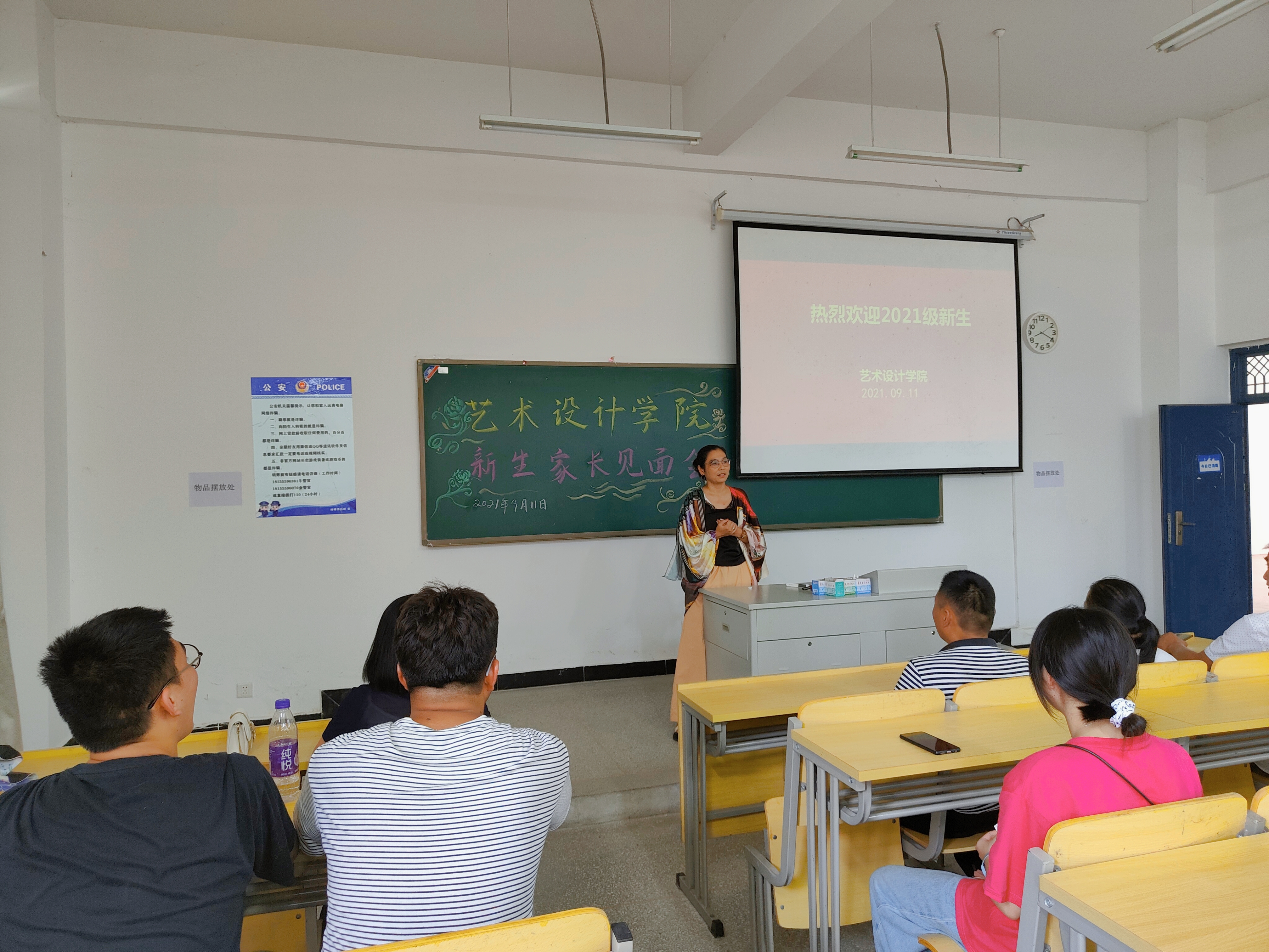 为迎接2021级新生的到来、也为新生和家长打造全方位了解艺术设计学院的平台,我院于9月11日(星期六)下午14:00在新利体育在线官网首页登录入口B104教室召开艺术设计学院2021年新生家长见面会。 艺术设计学院副院长刘瑛,院长助理金花,学工副办主任夏瑶,新生辅导员戴玉以及21届新生及家长参加了此次会议。