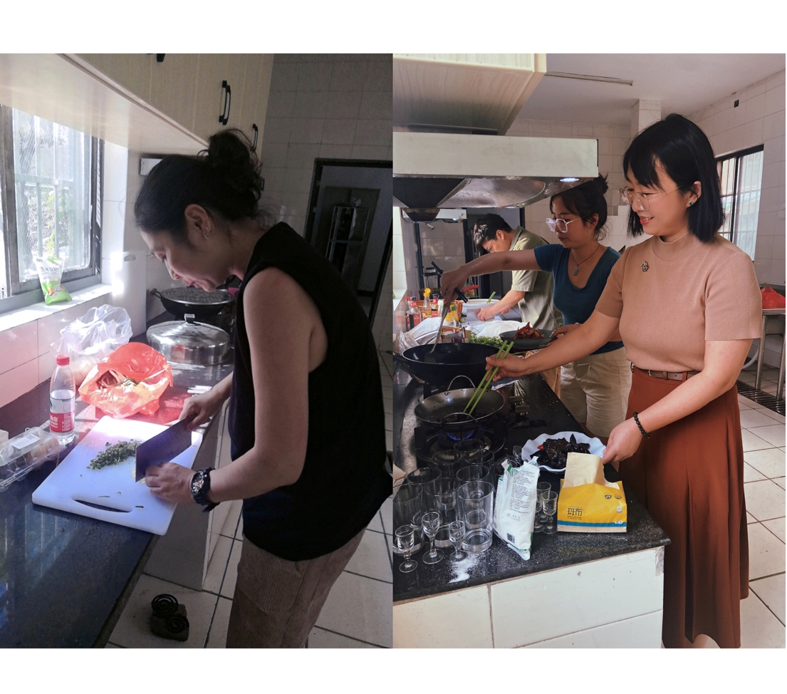 活动中,院长江冰教授亲自掌勺制作东北饺子馅,并指导青年教师包饺子、下饺子。学院每位老师也借此以机会展示自己教学以外的美食才华,一盘盘拿手菜点燃了整个晚宴的氛围。