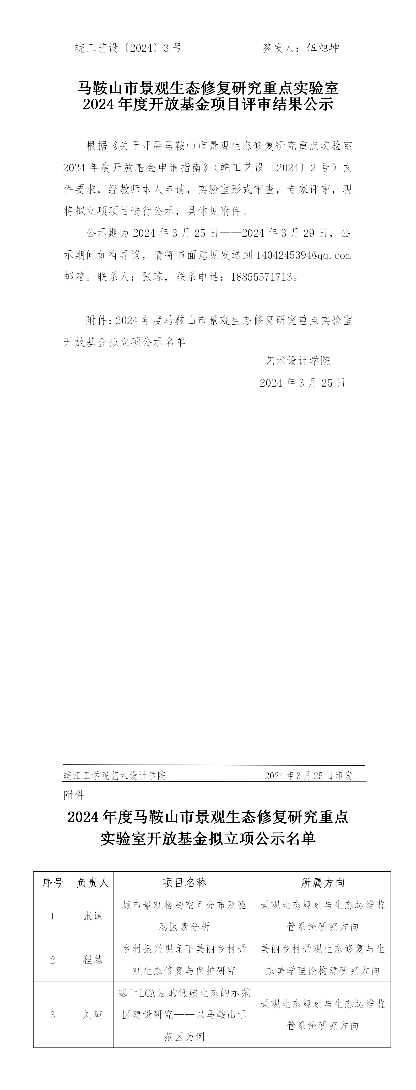 马鞍山市景观生态修复研究重点实验室2024年度开放基金项目评审结果公示
