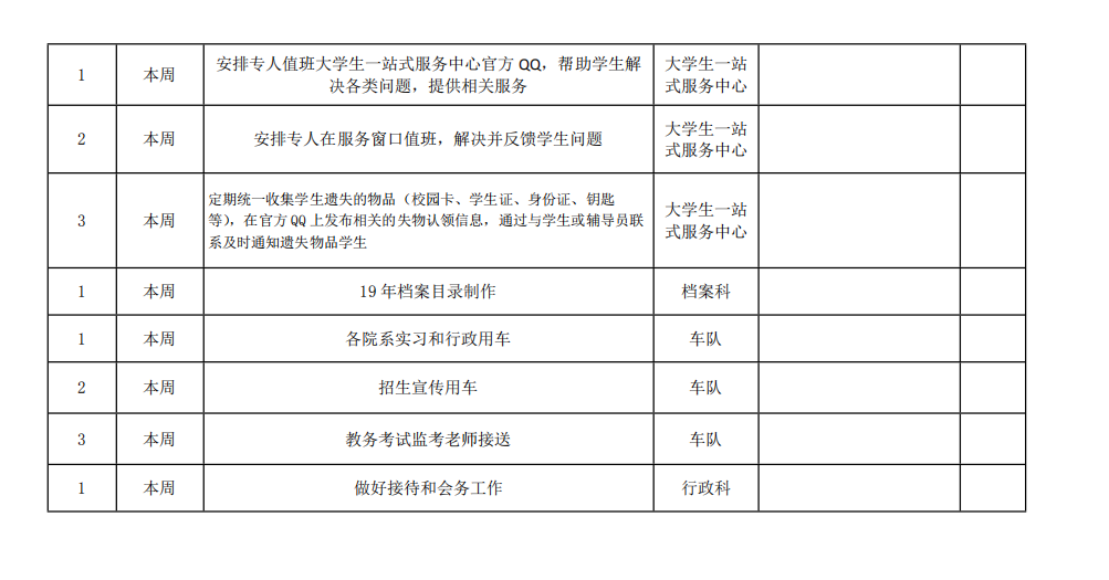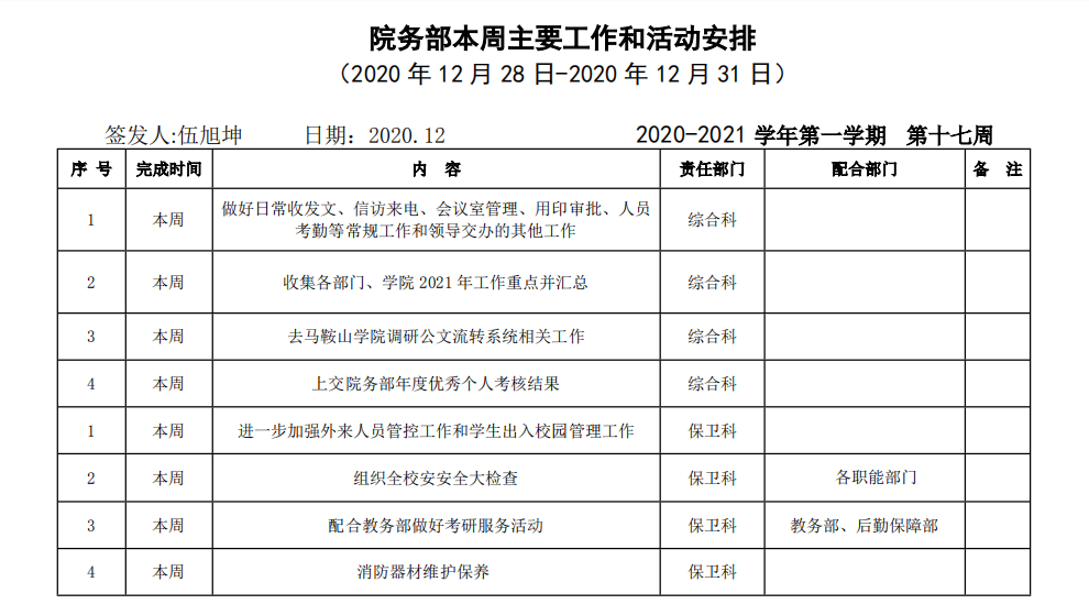院务部第十七周工作安排