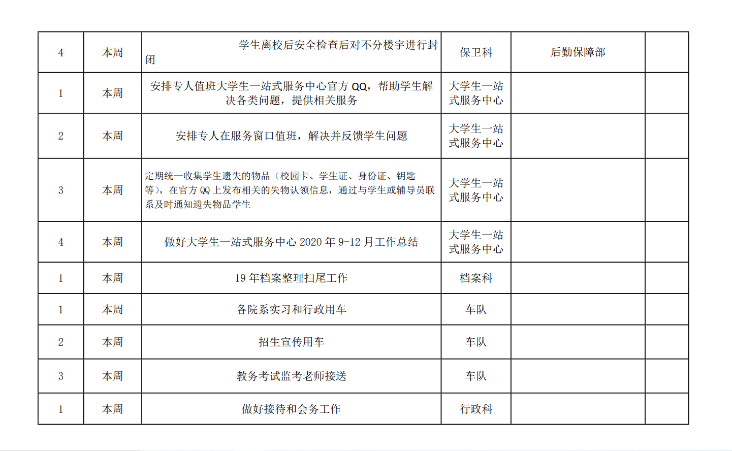 院务部第二十周工作安排.docx