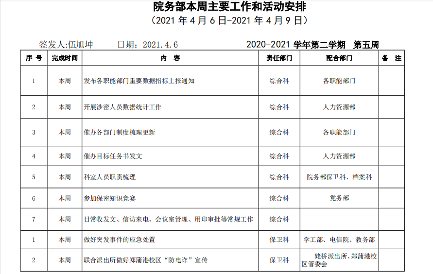 18新利怎样院务部第五周工作安排