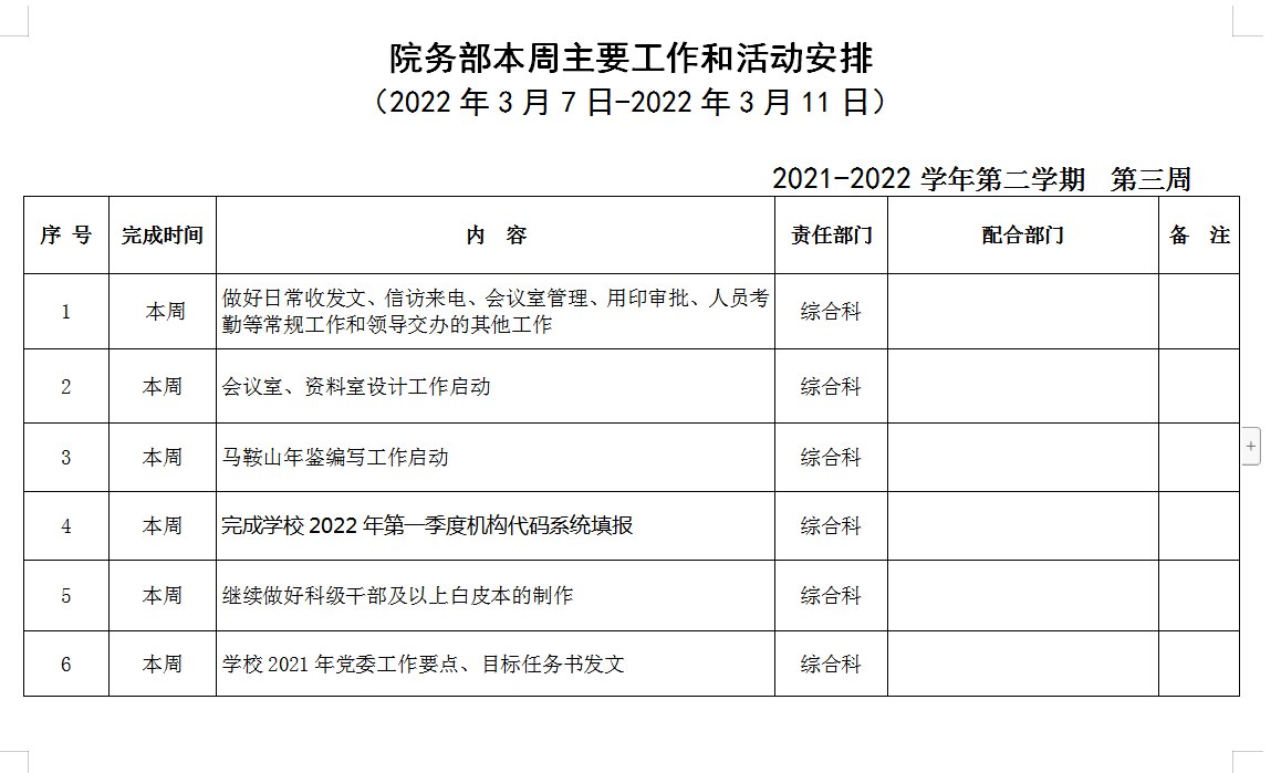 18新利怎样院务部第二周工作安排