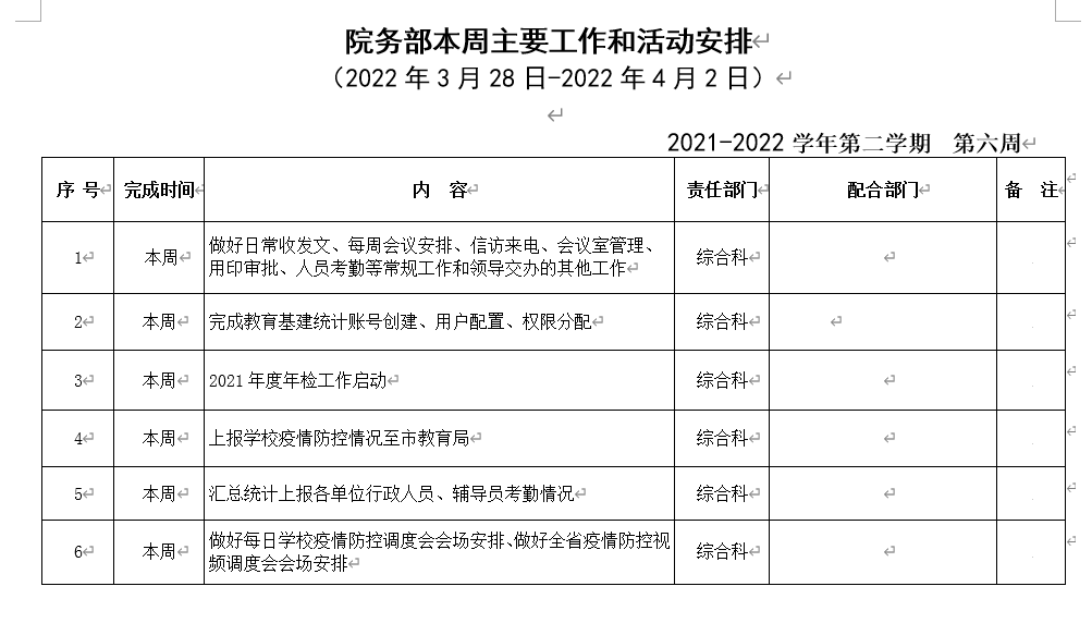 18新利怎样院务部第六周工作安排