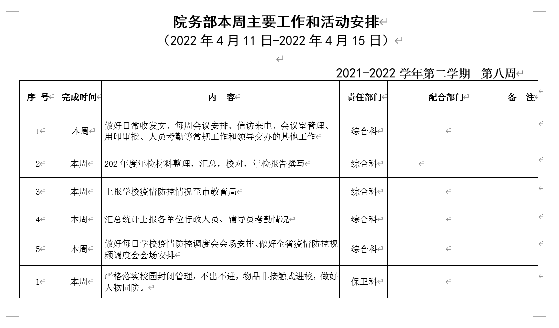 18新利怎样院务部第八周工作安排