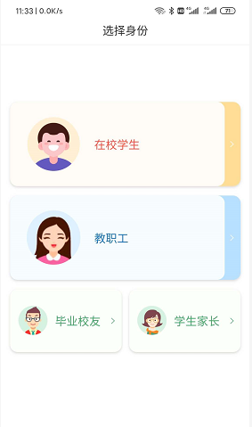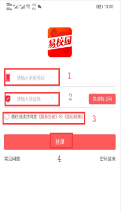 2、首次登陆易校园APP,需输入“手机号”;填写“验证码”;勾选“协议”;选择”登录”见图二。(注:部分用户登录界面会出现“邀请码”,不要填写。)点击“登录”后,弹出“定位权限”,选择“始终允许”见图三,再搜索框内输入“18新利怎样”或直接“点击18新利怎样”,见图四。根据图五界面选择相对应身份后,见图六。