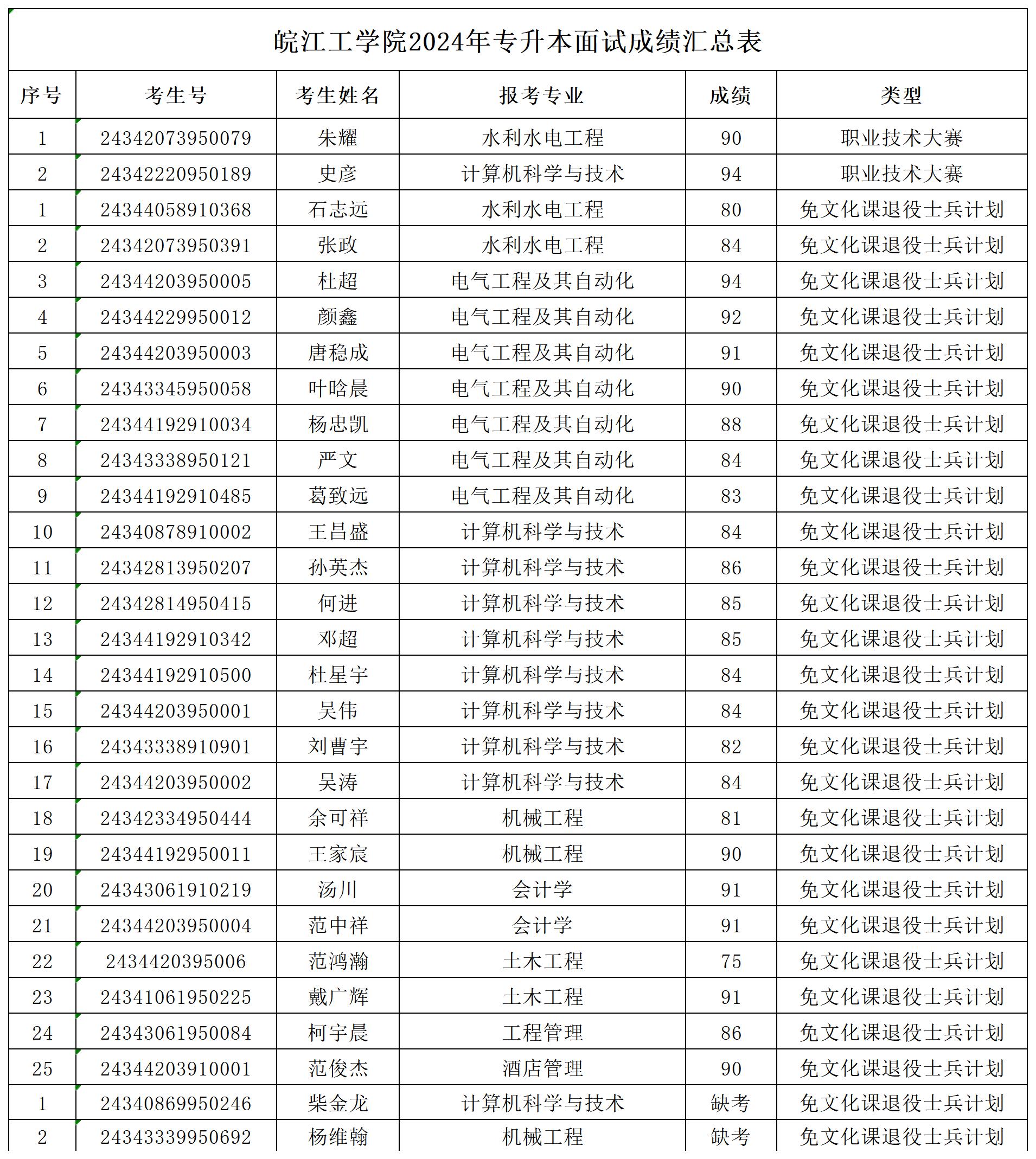 18新利怎样2024年免文化课退役士兵及职业技能大赛面试成绩公示